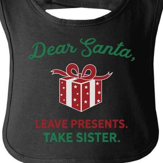 Dear Santa Leave Presents Take Sister Baby Black Bib