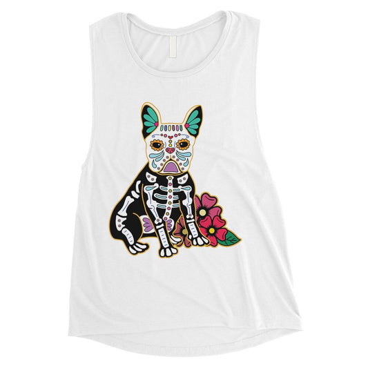 Frenchie Day Of Dead Funny Halloween Costume Cute Womens Muscle Top