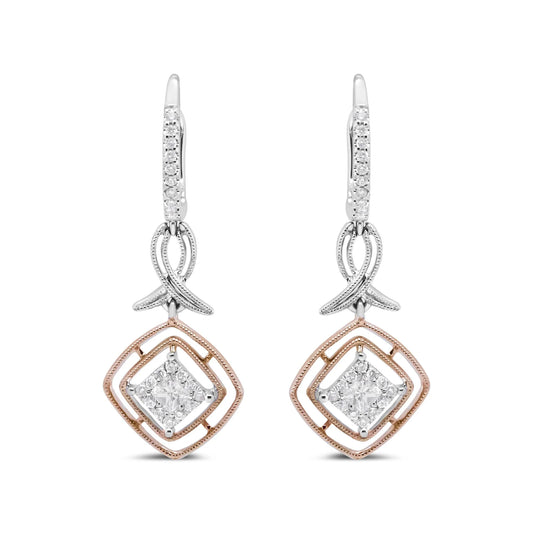 14K White and Rose Gold 1/2 Cttw Round and Princess-Cut Diamond Openwork Marquise Ribbon Dangle Earring (G-H Color, SI2-I1 Clarity)