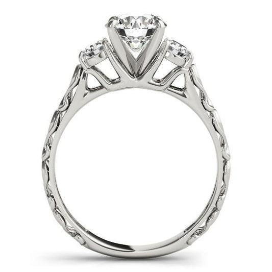 14k White Gold Antique Design 3 Stone Diamond Engagement Ring (1 3/4 cttw)