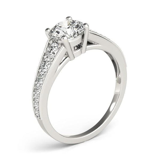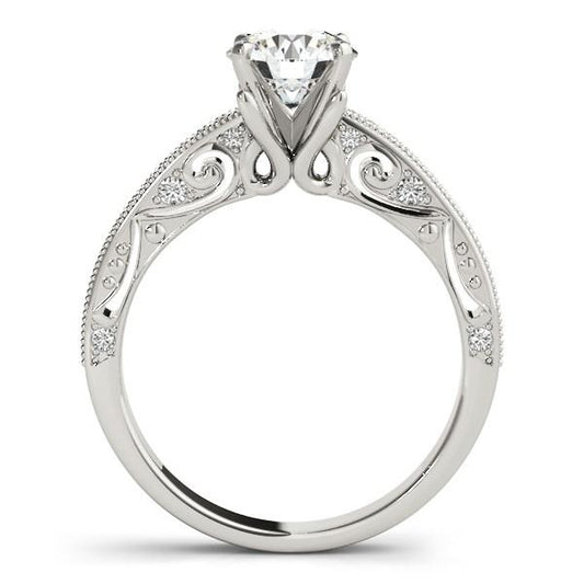 14k White Gold Antique Style Solitaire Round Diamond Engagement Ring (1 cttw)