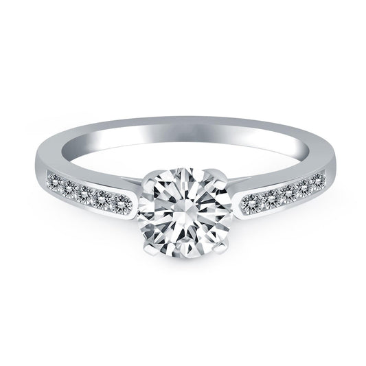 14k White Gold Diamond Channel Cathedral Engagement Ring