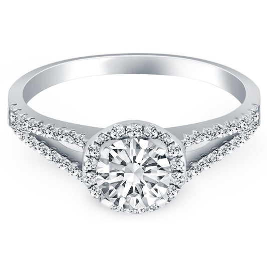 14k White Gold Diamond Halo Split Shank Engagement Ring
