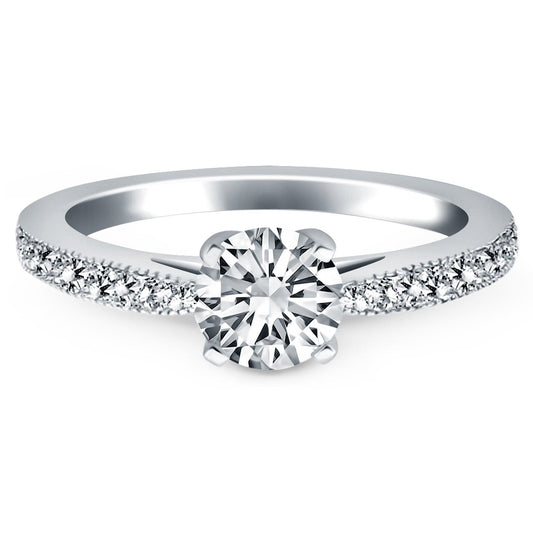 14k White Gold Diamond Micropave Milgrain Engagement Ring