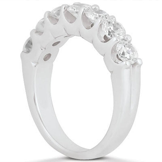 14k White Gold Diamond Scalloped Shared U Prong Setting Wedding Ring Band