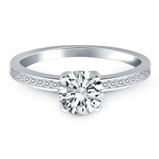 14k White Gold Engagement Ring with Diamond Channel Set Band