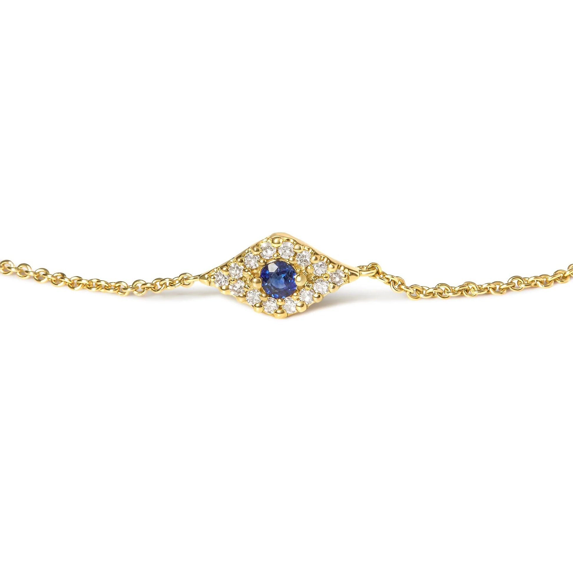 10K Yellow Gold Blue Sapphire and Diamond Accent Evil Eye Station Link Bracelet (H-I Color, I1-I2 Clarity) - Size 7"