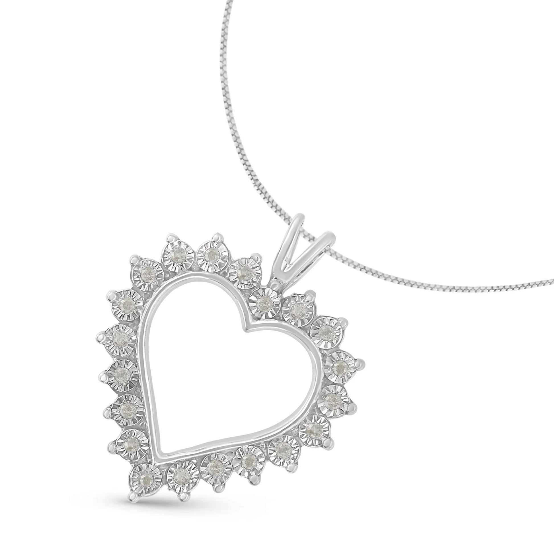 .925 Sterling Silver 1/4 Cttw Miracle Set Diamond Open Heart 18" Pendant Necklace (I-J Color, I3 Clarity)