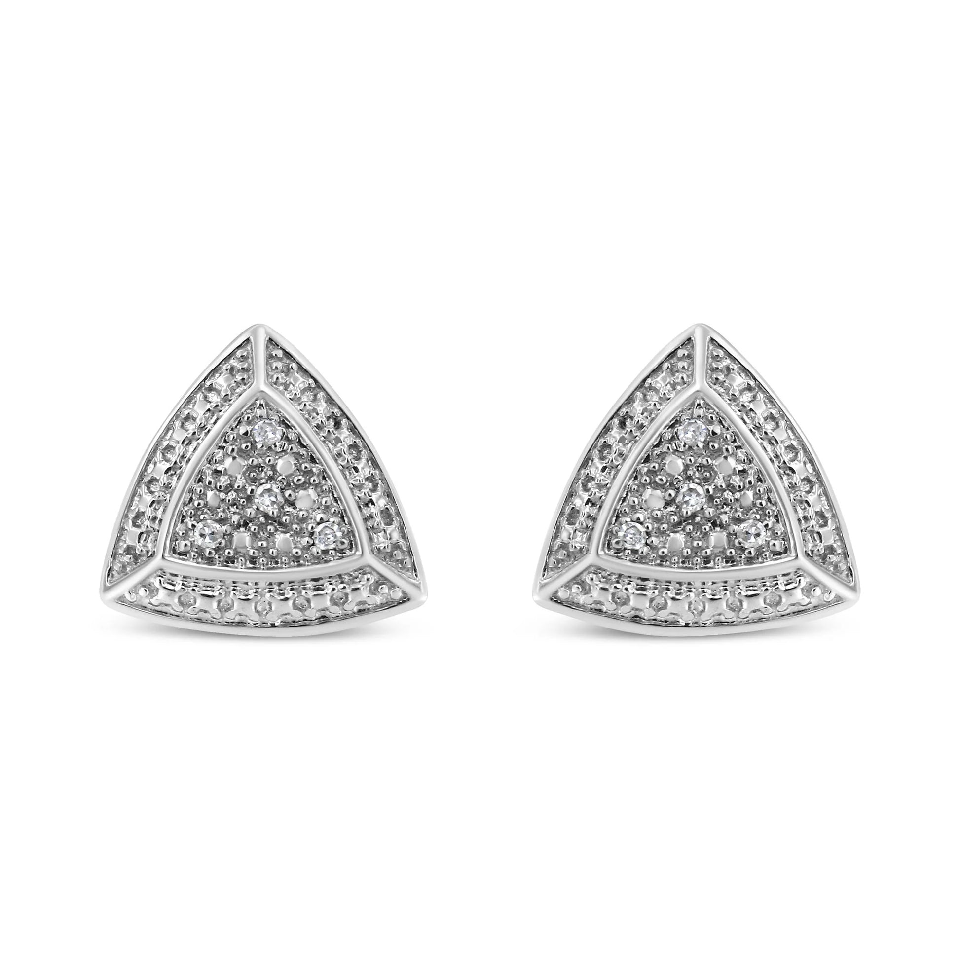 .925 Sterling Silver Diamond-Accented Trillion Shaped 4-Stone Halo-Style Stud Earrings (H-I Color, I2-I3 Clarity)