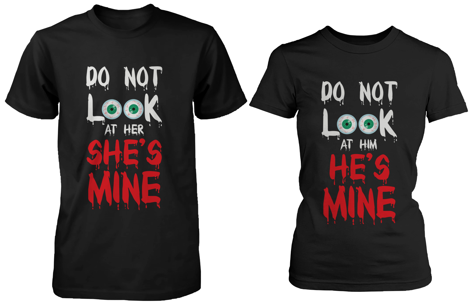 - This is our upgraded version of Do Not Look at Her/Him couple shirts from last year. It's cooler, it's more vibrant, and scarier than ever. These awesome shirts were designed to wear around during Halloween, but the more you look at them, the more you notice that these are pretty cool shirts to wear around all year long. Whether you're going to a Halloween party or a haunted house tour, make sure to wear these shirts to spend this Halloween with your BOOOO!