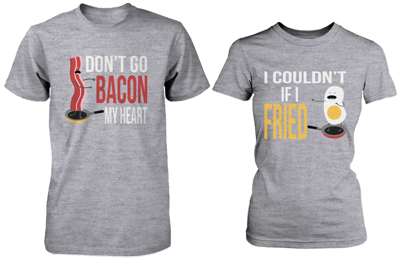 - Due to popular demand from our Bacon and Egg lovers, we've created a second editionof our Don't Go Bacon My Heart & I Couldn't If I Fried shirts in grey with upgraded designs. This cute and funny couple shirts set is a big hit all around the world. If you love humor and you love bacon & egg, you HAVE to own these shirts before you're left out from the crowd!