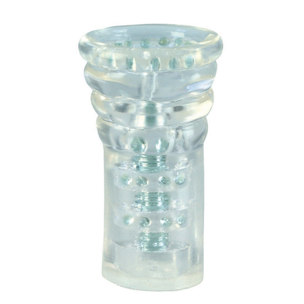 (NON-RETAIL, BULK PACKAGING) Sue Johanson Head Honcho comes without retail packaging bulk. Voted Toy of the Year by Sue Johanson's viewers. Sue Johanson's Head Honcho This super-stretchy, translucent silicone 5 inch long toy fits perfectly in the palm of your hand. The ribbed head provides better grip and prevents slippage. The entrance and interior tip both have raised nodules to increase stimulation on the head and base of the penis. The best part of this toy is the three extremely tight suction chambers. These three rings, each a half-inch apart, contain their own set of nodules that massage and create positive friction along the shaft! Safe and pure for body and pleasure. Made using phthalate free, non-toxic materials Senso Thermoplastic Rubber TPR. A water based lubricant is recommended. Hand held male masturbation device measures 5 inches long by 3 inches wide. Bulk weight 6.5 ounces. Always clean before and after use.
