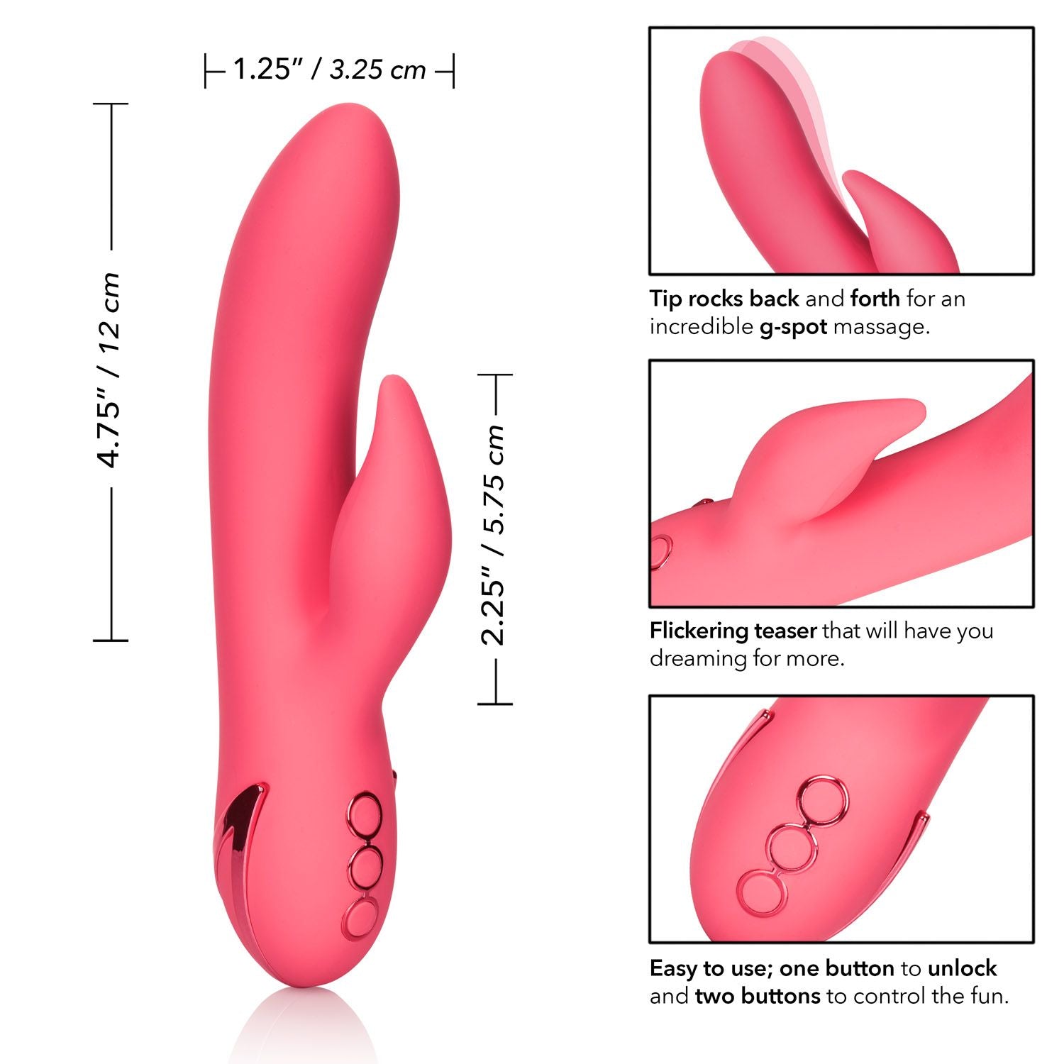 The luxurious vibrating massager has 10 intense vibration functions and 3 back-and-forth G-spot massager speeds for one-of-a-kind pleasure experience. An easy-to-use travel lock means you can go wherever you like - and take your personal pleasure right along with you. Designed for easy use, you'll find operation a snap even on the darkest night. Frustration free and perfect for pleasure, just one push brings intense stimulation your way. 3 speeds offer a powerful sensual experience. Enjoy peak stimulation and the ultimate in gratification. 10 exciting functions are designed for the ultimate in sensual pleasure and the peak of gratifications. You'll be stimulated and gratified in no time at all. This item features a state-of-the-art memory chip that will resume on the last function used. Reignite the pleasure, right where you left off. Materials : Silicone, ABS Plastic / Metallic Plating USB Rechargeable Max Charging Time 150 (minutes) Max Run Time 150 (minutes) Measurements 4.75" x 1.25" / 12cm x 3.25cm (Shaft) 2.25" x 1" / 5.75cm x 2.5cm (Stimulator) One year warranty