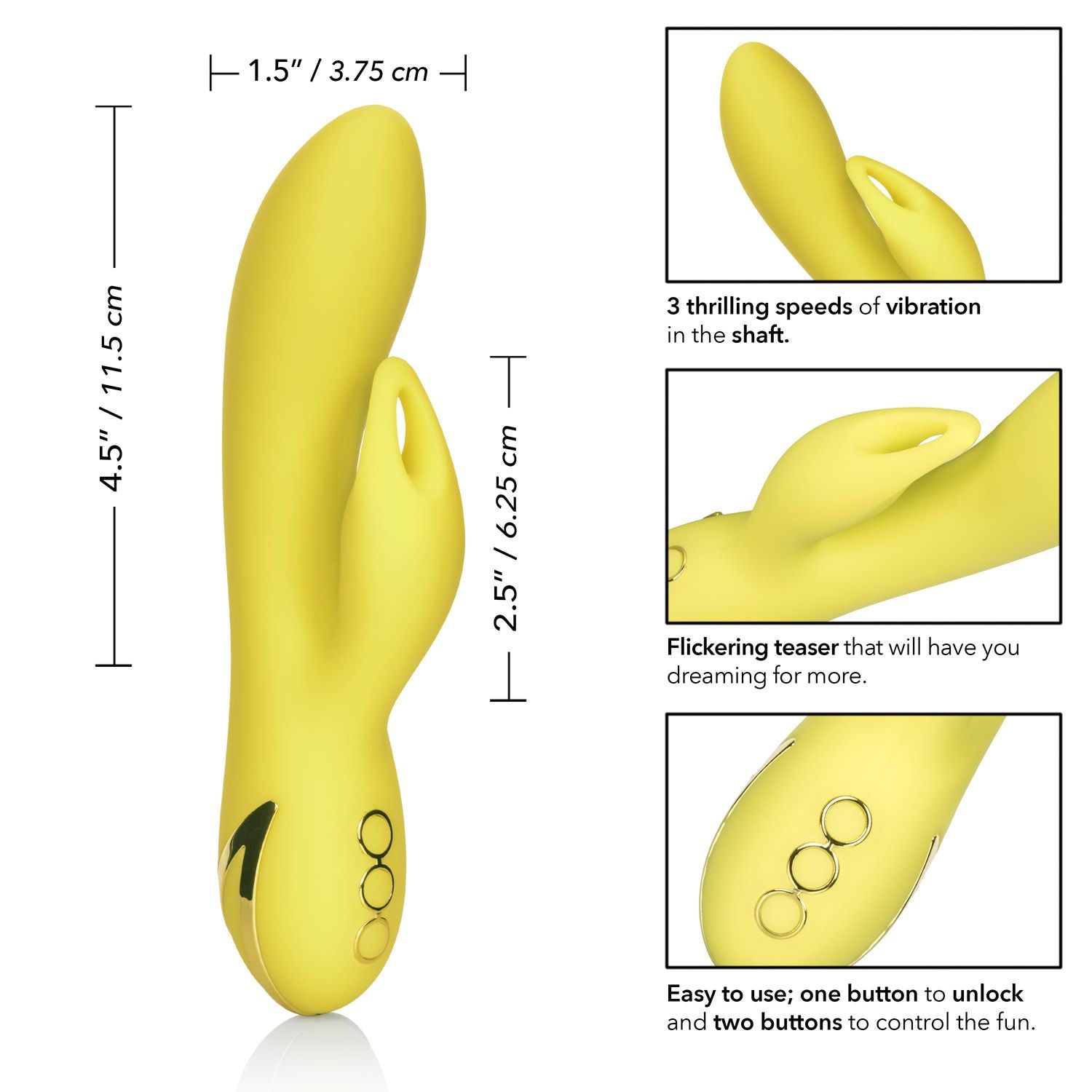 The luxurious massager has 10 intense vibration functions, 3 independent shaft vibrations and a unique teaser with a sensual clitoral encaser for one-of-a-kind pleasure experience. An ultra-power motor means this toy is specially designed for the most intense experience. An easy-to-use travel lock means you can go wherever you like - and take your personal pleasure right along with you.Designed for easy use, you'll find operation a snap even on the darkest night. Frustration free and perfect for pleasure, just one push brings intense stimulation your way. speeds offer a powerful sensual experience. 10 exciting functions are designed for the ultimate in sensual pleasure and the peak of gratifications. This item features a state-of-the-art memory chip that will resume on the last function used. Reignite the pleasure, right where you left off. Splashproof Silicone : ABS Plastic / Metallic Plating This product includes USB charging capabilities. Max Charging Time 150 (minutes) Max Run Time 150 (minutes) Measurements 4.5" x 1.5" / 11.5cm x 3.75cm (Shaft) 2.5" x 1" / 6.25cm x 2.5cm (Stimulator) One year warranty