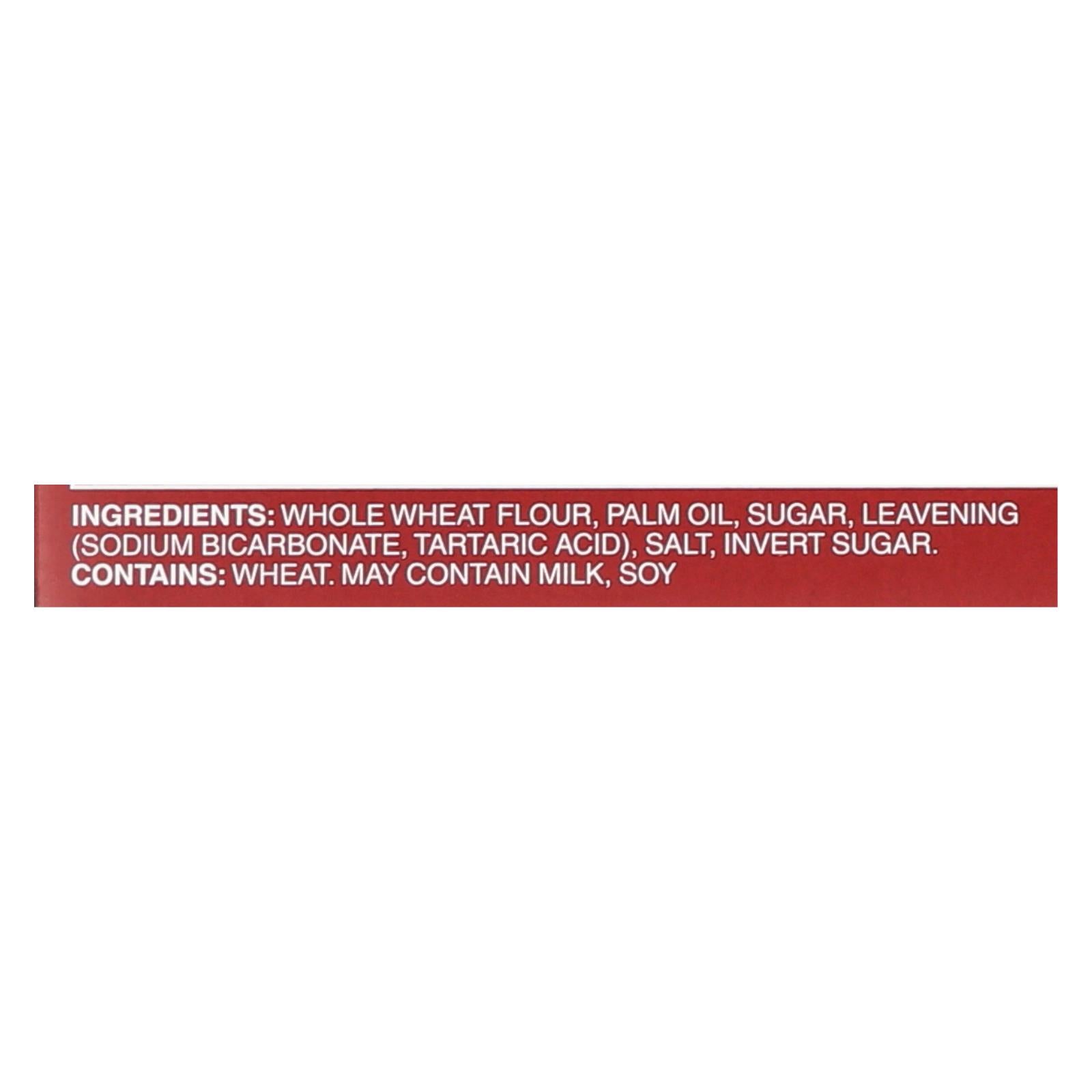 ingredients : whole wheat flour;palm oil;sugar;leavening;sodium bicarbonate;tartaric acid;salt;invert sugar
