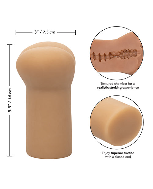 Indulge in thrilling wet dreams with the naughty Cheap Thrills® The Leather Daddy masturbation stroker. The closed-end design provides superior suction, while the multi- textured chamber and ultra soft, stretchy Pure Skin® material thrills with life-like sensation. The superior suction and thrilling texture are made to wrap every inch of you with knee-shaking stimulation.
