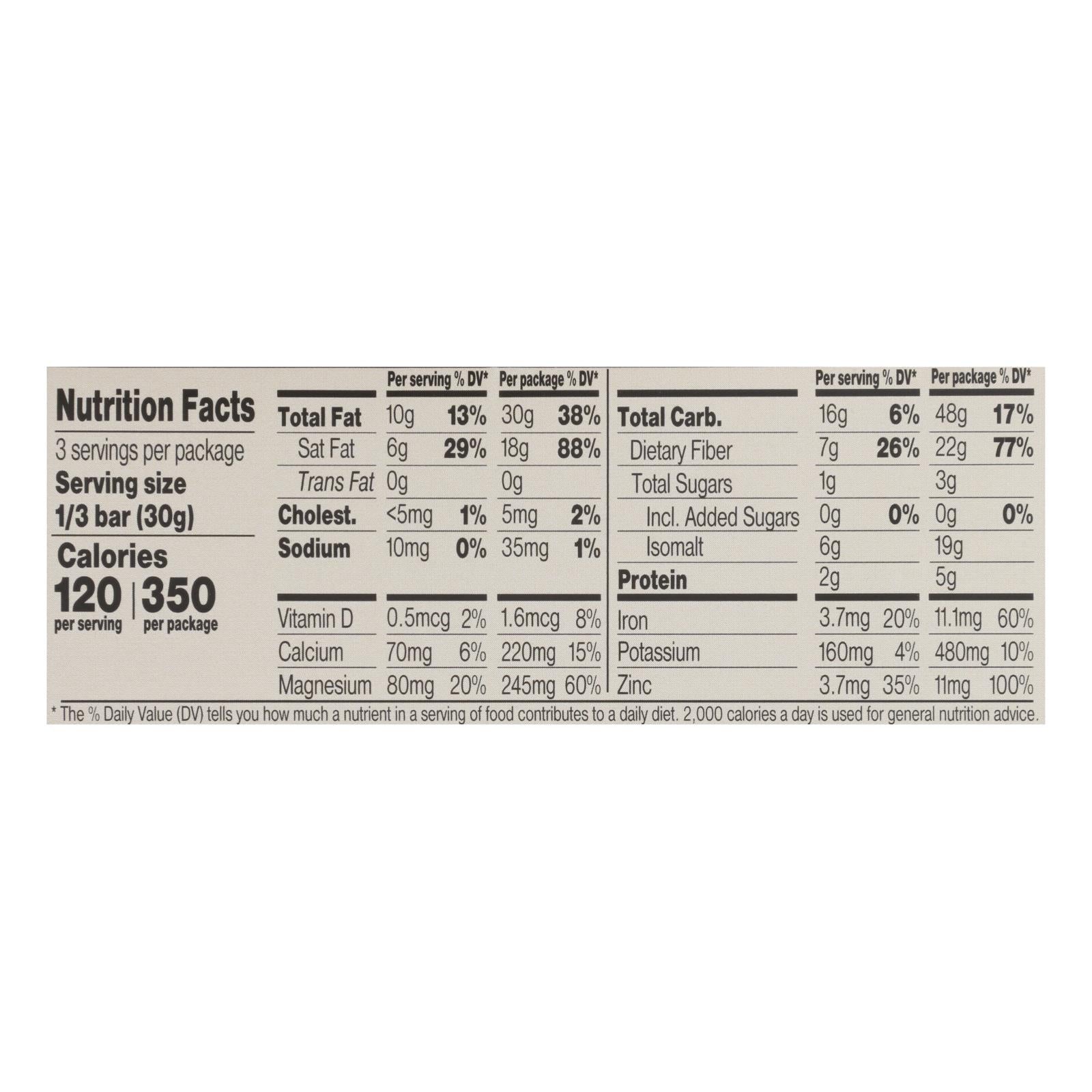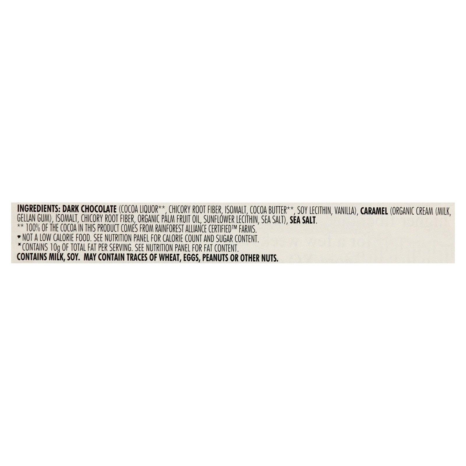 ingredients : dark chocolate (cocoa liquor**, chicory root fiber, isomalt, cocoa butter**, soy lecithin, vanilla);caramel (organic cream (milk, gellan gum), isomalt, chicory root fiber, organic palm fruit oil, sunflower lecithin, sea salt);sea salt