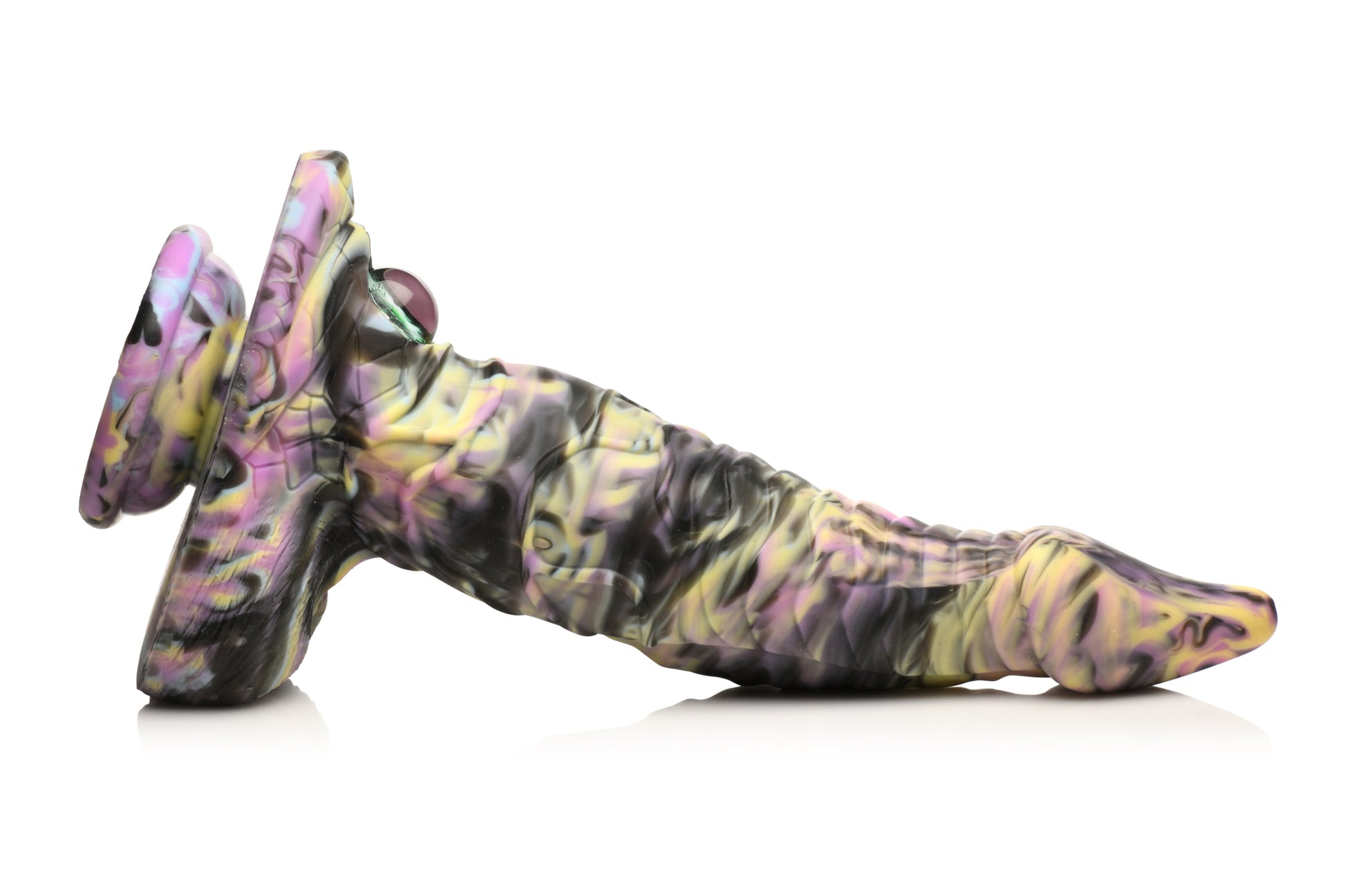 Creature Cocks Cyclops Monster Silicone Dildo from XR Brands. This Creature Cocks dildo comes from one of the many faraway lands of myth and fantasy. This yellow, pink and black rod has a tapered, textured shaft that is firm and flexible with a good amount of squish around the core so you push it deep into your sensual caverns. The serpentine like body of this sexy shaft has a long, tapered head with ribbed shaft, popping veins and an eye at the base. The vibrant green, glass cat eye makes this Cyclops Monster rod an intimate and mystical ride. Made out of premium, phthalate free Silicone it is body safe and best used with water based personal lubricants. The strong, suction cup base allows you to enjoy hands free rides when placed on any flat surface. It is also harness compatible so you can strap it to your partner or to a chair or bench. To wash it simply rinse in warm water and mild soap, then spray with a toy cleaner before letting it air dry. The Cyclops people only have one eye on their head, but where else do they choose to see from? Little known to most is how intimate and sexual the cyclops people are. In this fantasy realm you have fallen prey to the hungers of a Cyclops. After stumbling into their cave, you became distracted by the wonders and treasures they kept hidden inside. The Cyclops smelled you as soon as you entered their domain and their hunger began to grow with each passing minute that you lingered. The heat of the wet cave made you sweat and, as your sweat trickled down your chest and thighs, you felt your skin get wet and slick. The Cyclops Monster Dildo had its hands around your neck first. It knew how to immobilize you so you could not get away. As it pulls you towards it, it breathes you in deeply and licks its lips. You would heard horror stories about how the Cyclops people eat travelers and you feared the worst. But then its other hand slips around and begins to lift the clothing from your body, turn you around, and look you up and down. Its smile makes you realize it likes what it sees, but nothing makes that clearer than its raging, hard shaft. That is when you realize something else, something no lore had spoken of, the other eye gazes at you from above its shaft, wanting to take in every inch of you above and below. As it slips inside of you, making use of the humid air and your slick, wet body, you feel yourself convulse in pleasures you never knew before as the shaft moves in ways that feel foreign and exquisite. The Cyclops takes you in as you take their shaft deep inside your body, a physical and visual blend of blissful sensations. Measurements: overall length 11.3 inches. Insertable length 8.75 inches. Narrowest insertable diameter 1.4 inches. Widest insertable diameter 2.4 inches. Materials: Silicone, Glass. Color: Yellow, Pink, Black. Key features: Fantasy Dildo. This Creature Cocks dildo has swirls of yellow, pink and black that camouflage it in its native land. The pointed, tapered tip makes insertion easy and the ribbed, textured shaft stimulates you with each stroke. One green, Glassy cat eye gazes up at you as you ride it! Strong Suction Cup. Enjoy hands free rides with this strong, suction cup base that can be placed on any flat surface. Harness Compatible. Use it with a compatible harness for strapon or pegging play! Premium Silicone: Made out of premium, silky smooth, phthalate free Silicone it is soft and squishy on the outside while remaining firm on the inside. Use only with water based lubricants. Categories: Dildos, Dongs, Unnatural Dildos, Dongs, Realistic Large Dildos, Dildos and Dongs Realistic. 2023.