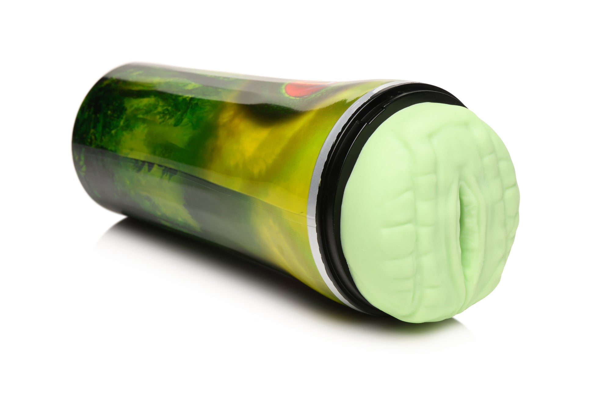 Creature Cocks Raptor Reptile Stroker from XR Brands. Your sexy dreams of serpents, lizards, dinosaurs or dragons are about to become more realistic! This Stroker has soft Green color and reptile skin with a small slit for an opening. Inside the Stroker are rows of textured ribs, grooves and nubs to drive you crazy as you dip yourself inside and enjoy pumping into the tight hole. Control the pressure and suction by using the Silicone plug at the base of the case. Keep it in and each pump will add a little pressure and suction for a tighter squeeze! Remove the Plug to release it. The case is open ended once the plug is removed so that you can easily rinse and let the water run through it. For an even more thorough clean up process, remove the Stroker Sleeve and wash it separately before letting it air dry. Place the Cap on top once the Sleeve is reinserted to keep it free of dust and debris. Use only with water based lubricants. Enjoy indulging in your kinky fantasies of sci-fi or horror as you give into your dark desires! You could been curious what was beyond the known lands that have been charted and mapped, so after you headed out with a team to explore the deep caves beneath the Earth's surface, you were searching for something you would never seen before. As you descend on your solo journey, your expedition team waiting at the base camp, you are eager to get in and get out. It's hot below the surface. Of course, it is usually cold and dark but what you and your team discovered changed all assumptions about what is hidden below. Specialty caves carved out by giant beings, scrapes and claw marks on the walls, created a small city below the surface! Each one of them was close enough to a lava vein to keep it nice and hot. Sweating and wet, you take off your shirt and take a break to drink some of your iced water. Your vision feels hazy, you are exhausted, and as hard as you try to fight it, you start to fall asleep. With a jolt you wake! There is something holding your arm. You open your eyes and come face to face with a lizard creature! Their Green, scaled skin and large yellow eyes put you into a state of shock and you scream! The lizard hisses and pounces on you, pinning you so you stay still. It is as large as you are, muscled and lean with a human like form around the breasts and face. It isn't quite a lizard or human, but something in between. It starts to make a purring sound, deep in its throat, and flick its tongue. It pulls your pants off as its nose sniffs for something like a dog would. As soon as your pants are off you rod springs free, hard and twitching despite your best effort to calm it! The lizard creature climbs on top, its strong, taloned claws holding you down so you can not move, its tail swishing from side to side, and then begins to rub against your shaft. As it does, its eyes close slightly and you can feel it begin to open up. Your shaft slips inside its wet slit and the tight squeeze around your shaft makes you gasp! As it rides you it keeps purring, writhing and grinding until you both climax in the hot caves beneath the earth! Measurements: Case 8.7 inches in length by 3.5 inches in width. Insertion depth 7.25 inches. Materials: Masturbator Thermoplastic Elastomers TPE. Case: ABS Plastic, Silicone. Color: Green. Categories: Male Masturbators, Sex Toys for Men, Sleeves, Rings, Solo Masturbators, Masturbation Sleeves. 2023.