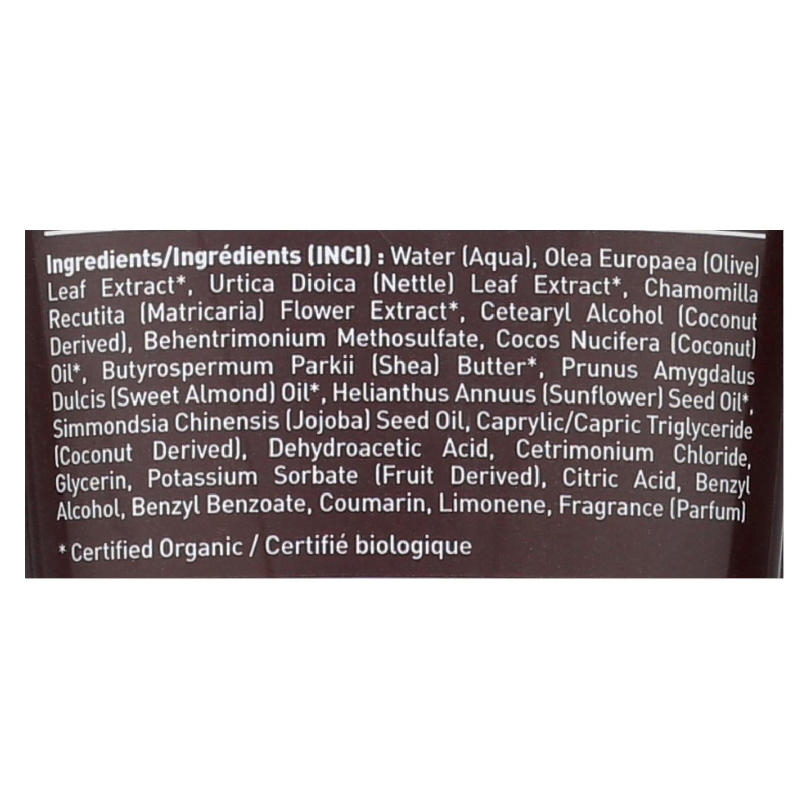 ingredients : water;aqua;olea europaea;olive;leaf extract;urtica dioica;nettle;chamomilla recutita;matricaria;flower extract;cetearyl alcohol;coconut derived;behentrimonium methosulfate;cocos nucifera;coconut;oil;butyrospermum parkii;shea;butter;prunus amygdalus dulcis;sweet almond;helianthus annuus;sunflower;seed oil;simmondsia chinensis;jojoba;caprylic/capric triglyceride;dehydroacetic acid;cetrimonium chloride;glycerin;potassium sorbate;fruit derived;citric acid;benzyl alcohol;benzyl benzoate;coumarin;lim