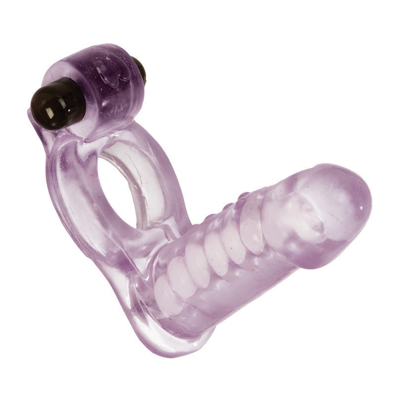 Double your pleasure! The Double Diver Vibrating Enhancer with 4" x 1.25" Flexible Penetrator gives you the thrill of double penetration with the ease of a cock ring. Comes equipped with bullet vibrator for wireless vibrations to pleasure both partners. Flexible penetrator with bendable shaft for perfect "double diving" positioning,3-speed removable wireless push button bullet,Sturdy TPR (enhancer) ABS (stimulator),Batteries included (3 watch, 6 included), 4"x 1.2"/ 10 cm x 3 cm (enhancer)