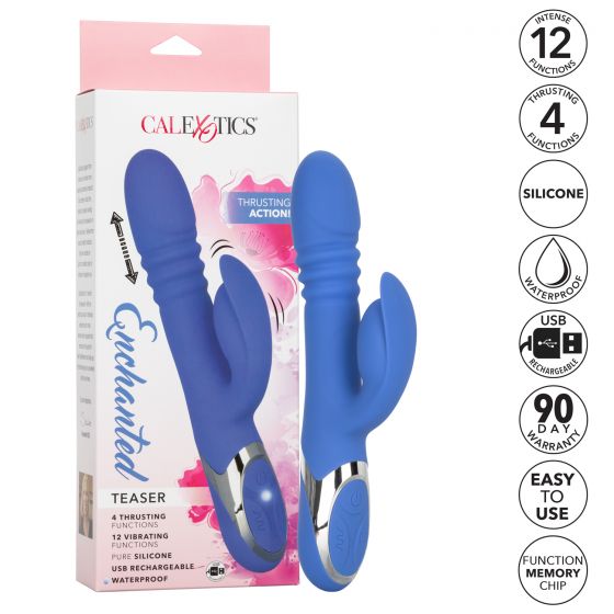Powerful thrusting,rotating shaft plus rumbling teaser. 4 functions of thrusting and rotating action in the shaft. 12 Functions of independent vibration, pulsation and escalation in the stimulator. Memory chip. Easy push button control with instant on/off button and LED light. USB rechargeable - 2 hour charge time for 50 minutes play time. Waterproof.