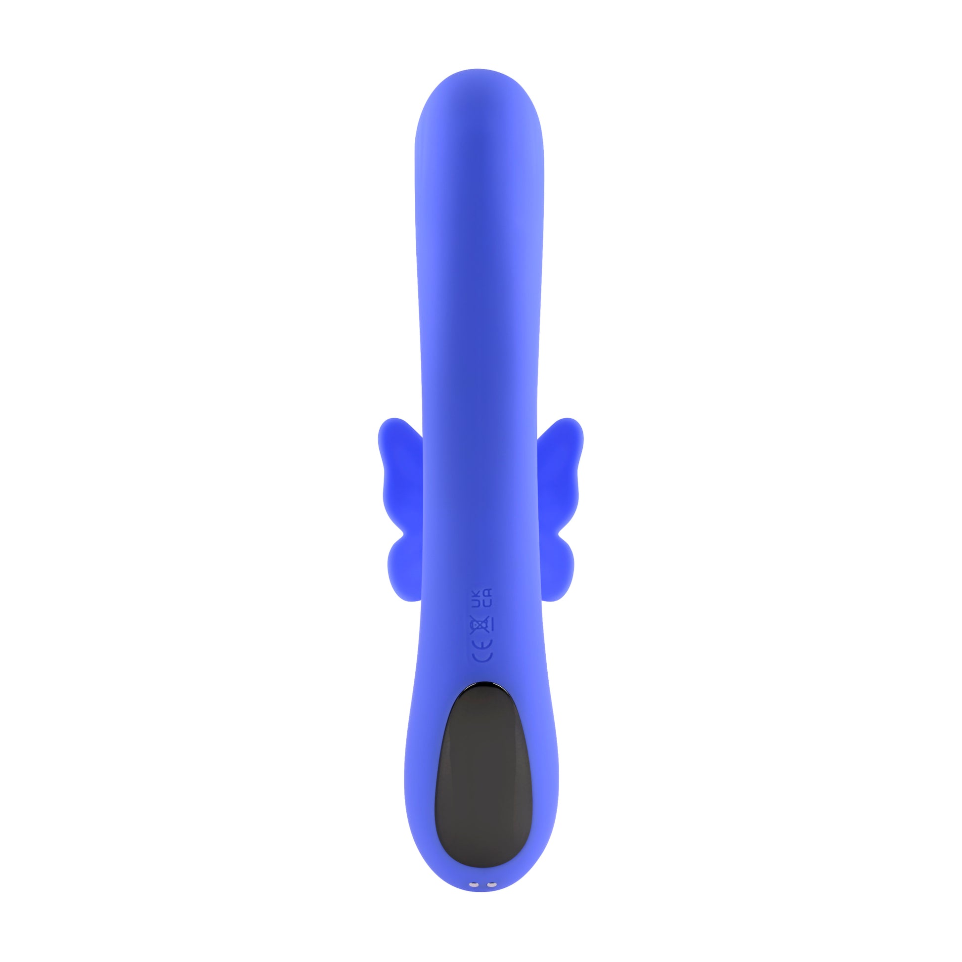 Evolved Butterfly Dreams Rabbit Vibrator. This unique Butterfly Vibrator has a sexy split in the main shaft that adds an extraordinary pliable girth to your experience! Meanwhile its chunky winged Butterfly has two antennae that just will not quit and each motor operates independently in 10 powerful speeds and patterns. With an easy to use 3 button control panel and flexibility to move with your body, this sex toy is completely water submersible and Rechargeable via USB.