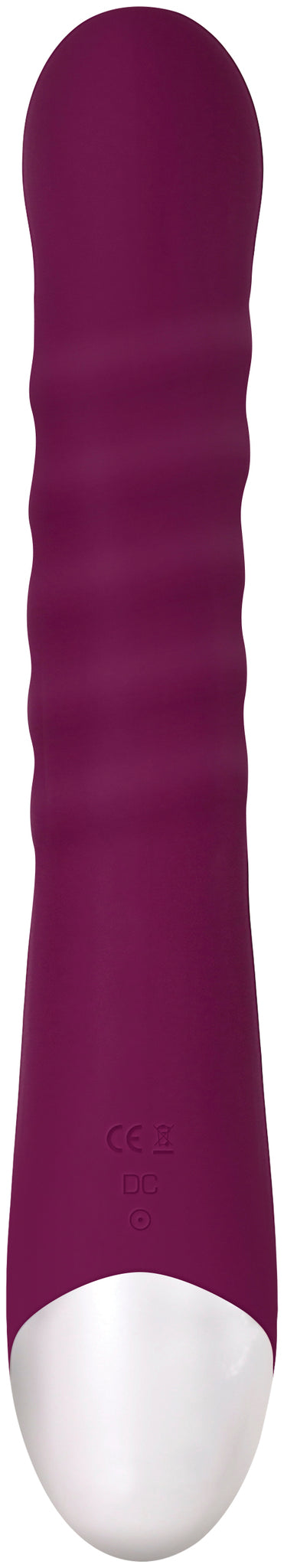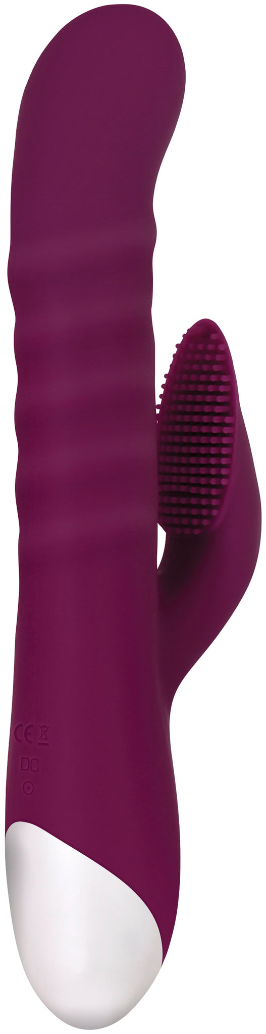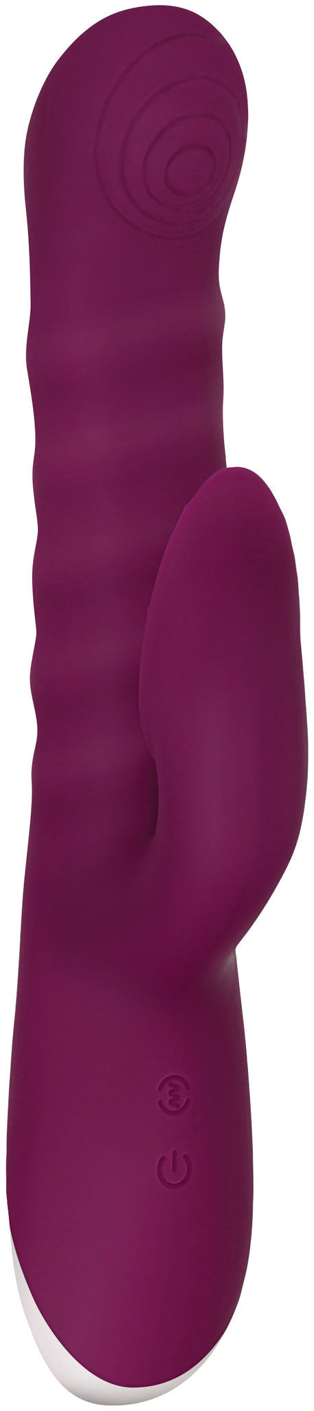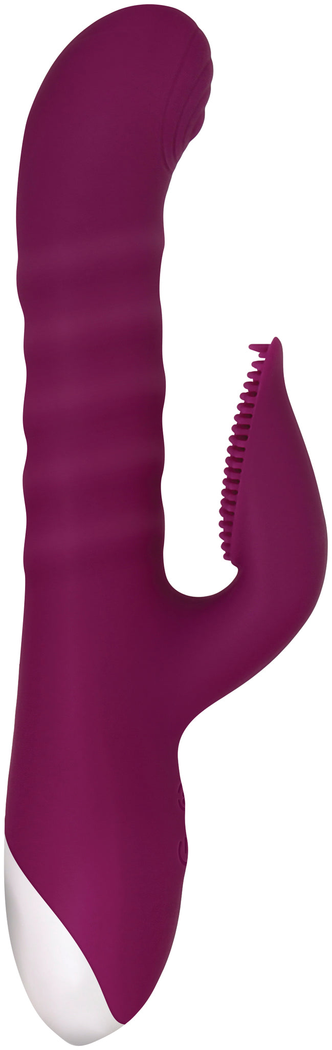 Lovely Lucy Rechargable Vibrator from Evolved Novelties. Satisfy multiple pleasure cravings at once! Two powerful motors deliver an extraordinary combination of sensations, thrusting, spinning, internal and external vibration, not to mention the quivering nubs that dance all over the clitoral shaft platform. Choose from 3 thrusting and spinning speeds, and adjust the 10-speed clitoral shaft to find the perfect blend that makes your toe curling fantasies come true, even under water as it is completely submersible. Clean with Evolved Toy Cleaner and a warm water rinse. Thrusting, spinning dual vibrator. Perfect for internal/external pleasure. Shaft head thrusts and rotates. Rotating beads in shaft for extraordinary sensation. 3 thrusting and spinning speeds, operated together. Main shaft thrusts up to half an inch. Vibrating nubs on clitoral shaft for intense stimulation. 10 vibrating clitoral shaft speeds and functions. Slightly curved main shaft and circular texture on G-Spot point. Stylish white pearl finished handle. Easy to use 2 button control panel
