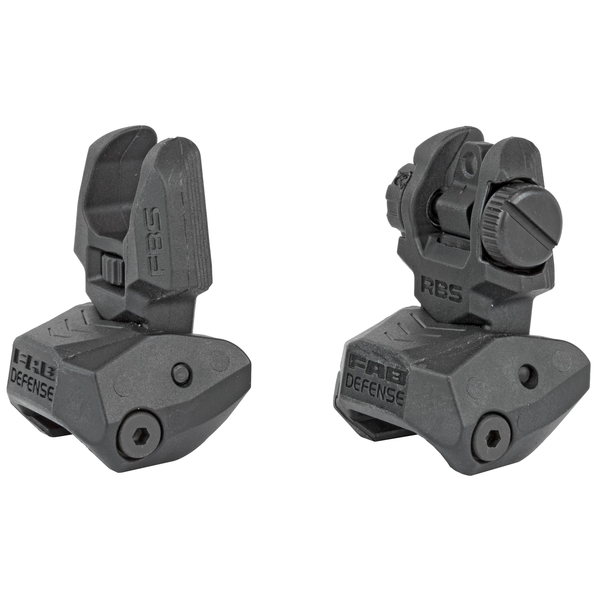 FAB Defense manufacturers and distributes unique weapon accessories designed for combat in the most extreme environments. With a workforce consisting of real world operators with real world combat experience you know FAB Defense has the experience necessary to offer you the finest gear available on the planet. Youre your life depends is on the line gear up with FAB Defense products. FAB Defense has a flip up sight set that is designed to help you quickly center your target in the sight picture by creating an optical tunnel. The smooth design helps prevent snags and can work as primary sights or back up. Easily installs on Picatinny rails and has tool less elevation and windage adjustments. Sights have a positive detent lock in the deployed position. Front sight not made to be mounted on a gas block.