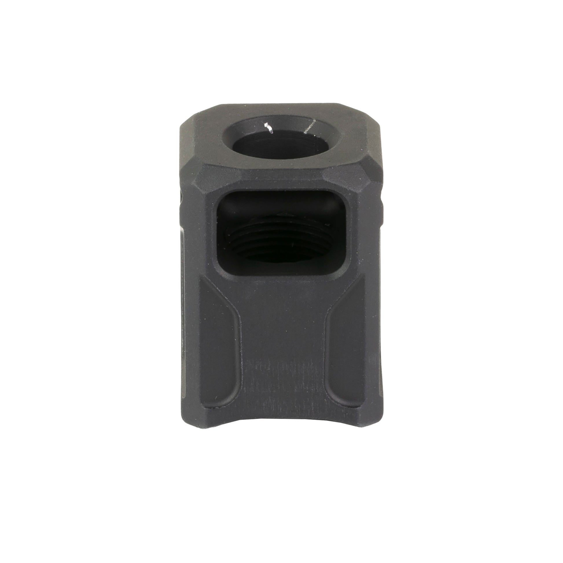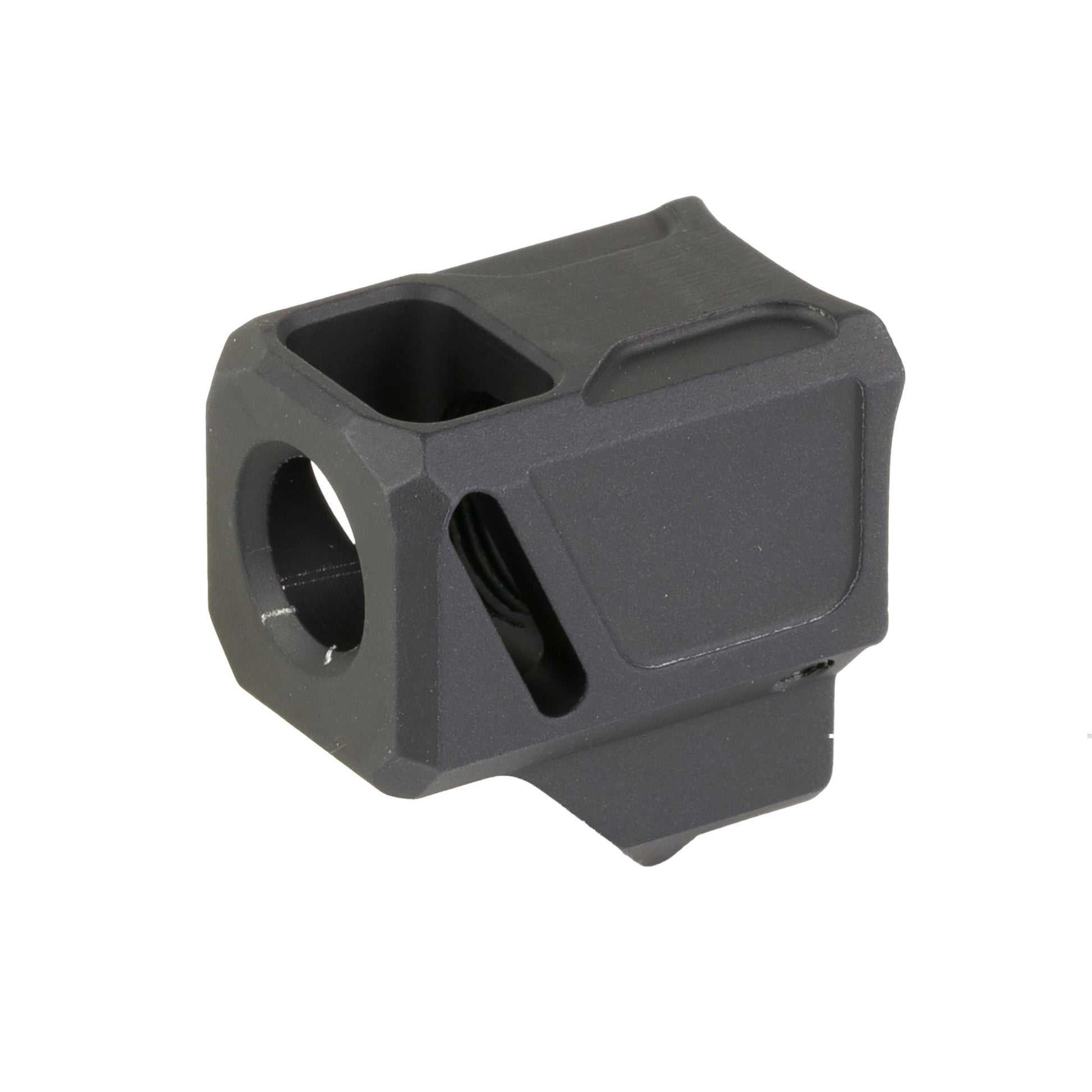 Faxon Firearms Pistol Compensators have been tested and confirmed compatible with Glock 43X and Glock 48 Pistols. Constructed of 6061 aluminum with a black anodized finish, Faxon Pistol Compensators feature a uniquely angled front port single chamber design, enabling the compensator to improve consistency while reducing muzzle climb and recoil. The angled ports allow gas to deflect upwards as opposed to only deflecting sideways, reducing up and down muzzle movement and improving reliability. Barrel protrusion is designed to fit flush with the slide and has been optimized for Faxon branded barrels. For all other barrels, the barrel should protrude .600" or less for a flush fit. Each compensator comes complete with thread locker, two 6-32 set screws, and a 1/16 Allen wrench.