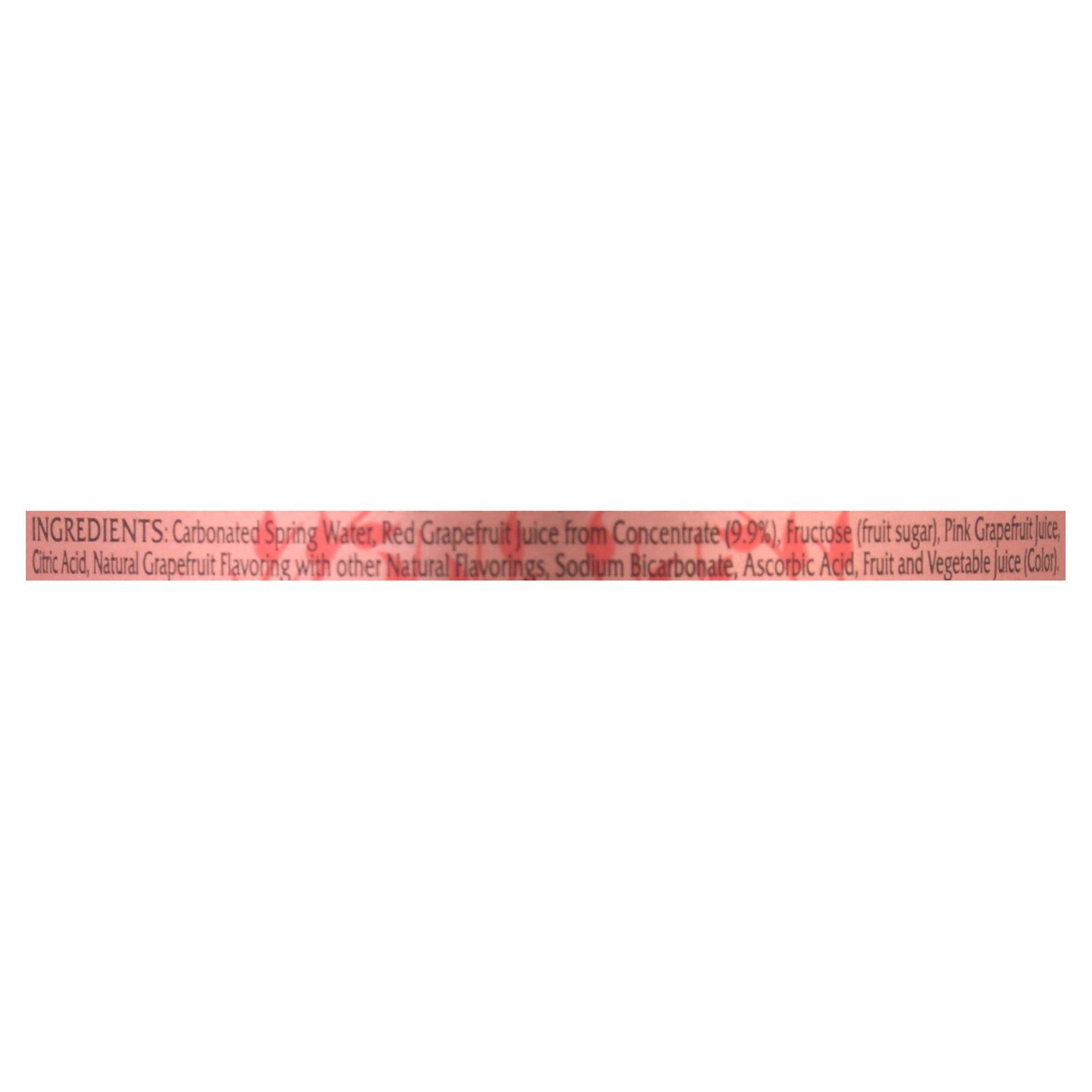 ingredients : carbonated spring water;red grapefruit juice from concentrate (9.9%);fructose (fruit sugar);pink grapefruit juice;citric acid;natural grapefruit flavoring with other natural flavorings;sodium bicarbonate;ascorbic acid;fruit and vegetable juice (color)
