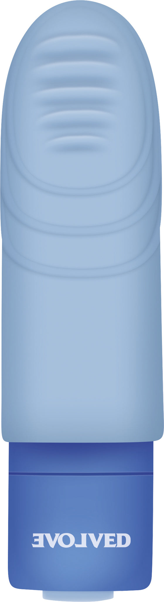 Fingerlicious Blue Finger Vibrator from Evolved Novelties. Who needs a big toy when an effortless finger ring can instantly send you on a delicious pleasure ride? Feel the magic as you or your partner slip this vibrating ring over any finger and let your primary erogenous zone. The concentrated power in 10 different speeds and functions send scrumptious thrills throughout your body that are truly fingerlicious. Enjoy underwater play, it is completely submersible. Rechargeable via USB. Size 2.94 inches by 1.59 inches by .92 inch. 5 years warranty.