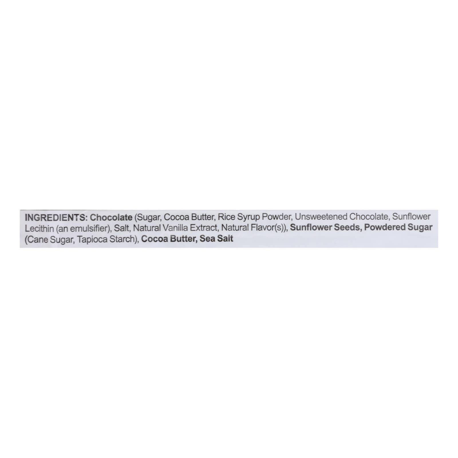 ingredients : rice chocolate;cocoa butter* ;organic rice syrup powder;sugar;unsweetened chocolate* ;sunflower seeds;organic powdered sugar;evaporated cane juice;tapioca starch;cocoa butter;organic palm fruit oil;sea salt