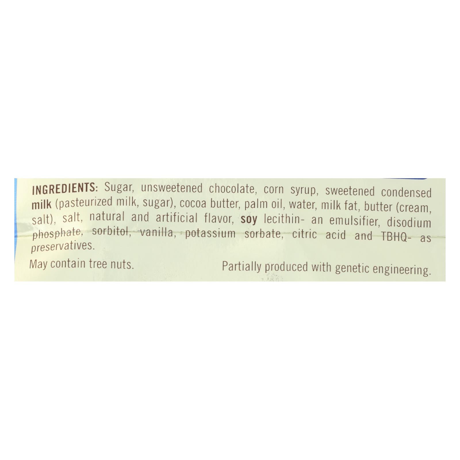 Ghirardelli dark chocolate sea salt caramel squares are a certified kosher-dairy product. This dark chocolate comes in one 5.32 oz. Bag and contains 0 g. Of trans fat and cholesterol. Each serving has 70 calories, 35 mg. Of sodium, 2.5 g. Of saturated fat and 1 g. Of protein. See nutrition facts panel for allergens.