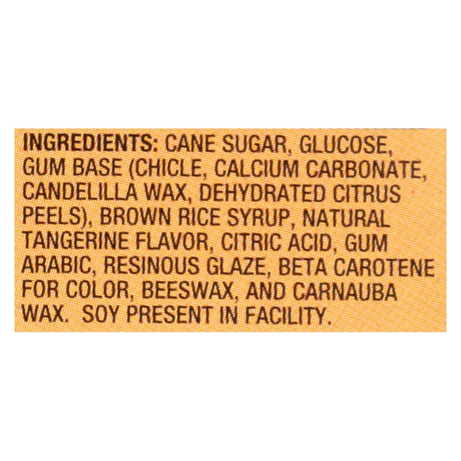 Glee gum natural tangerine chewing gum is unlike any other gum. This bubblegum is made with a natural, plastic-free gum base and natural colors, flavors and sweeteners. This kosher and non-gmo gum is sweetened with fair-trade cane sugar and aspartame free. Each box of glee gum natural tangerine chewing gum contains 16 pieces.
