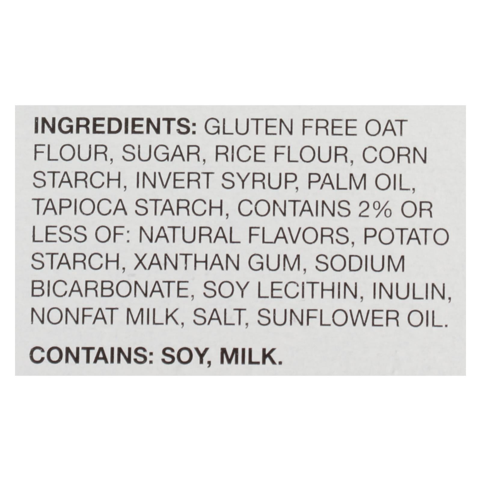 ingredients : gluten free whole grain oat flour;cane sugar;palm oil;rice flour;invert sugar;contains 2% or less of: natural flavors, sodium bicarbonate, soy lecithin, inulin, salt, xanthan gum