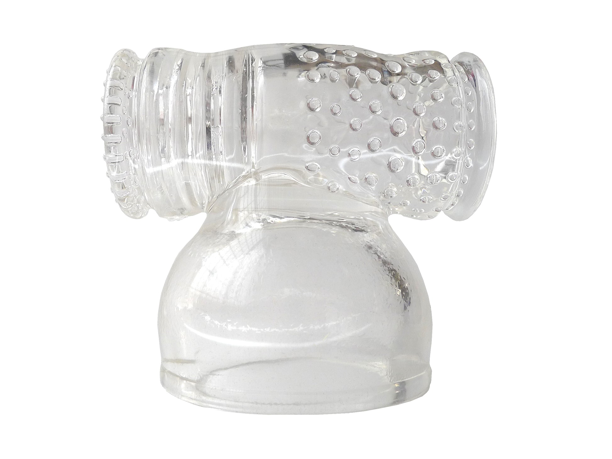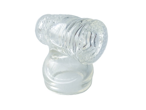 Hammerhead Masturbator Attachment is made using phthalate free Thermoplastic Rubber TPR. Male masturbation device is compatible with most silicone or water-based lubricants. Masturbator measures 3.75 inches long (9.5 cm). Outer circumference 5.75 inches (14.6cm). The Hammerhead Masturbator is a soft, stretchy massager wand attachment for men that delivers intensely pleasurable fluttering and sucking sensations when you slide the snug fitting sleeve back and forth along the shaft of your penis. Clear stroker lets you view as you stroke. For use with the VibeRite Personal Massager. Sold separately. Hammerhead Masturbator Attachment is registered trademarks for Kink Labs. Weight .36 pound.