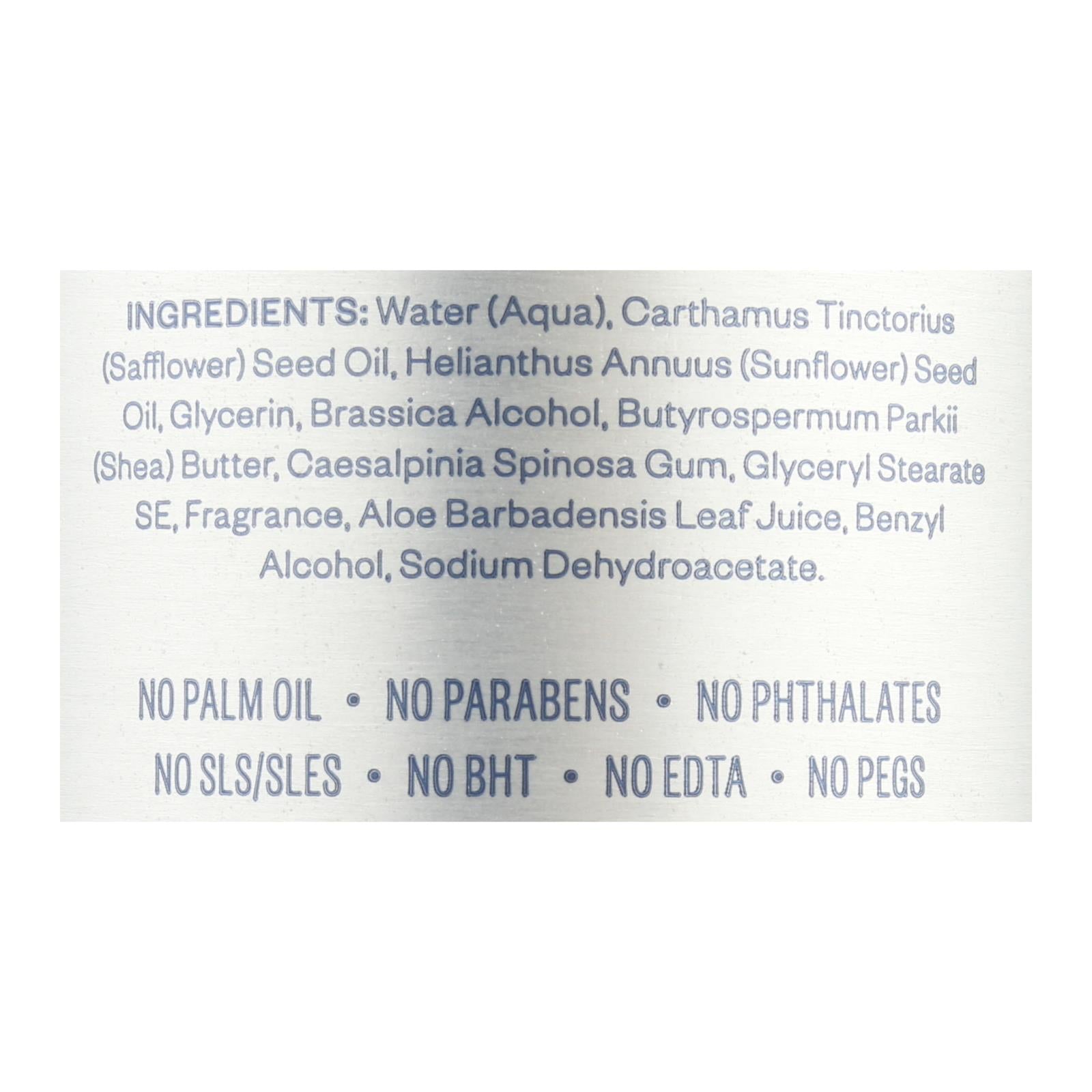 ingredients : water (aqua);carthamus tinctorius (safflower) seed oil;helianthus annuus (sunflower) seed oil;glycerin;brassica alcohol;butyrospermum parkii (shea) butter;caesalpinia spinosa gum;glyceryl stearate se;fragrance;aloe barbadensis leaf juice;benzyl alcohol;sodium dehydroacetate